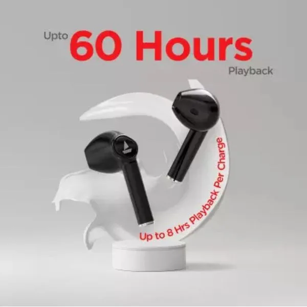 Sleek. Comfortable. Stylish. And a Splash of Incredible Colors. Bring alive your favorite sounds with these true wireless earbuds. Equipped with 13mm drivers for the magical boAt signature sound. Designed for supreme ease with Insta Wake N’ Pair technology that auto connects the moment it’s out of the case and Type C Charging. Tws earbuds to drown all the sounds you don’t need and live every moment. With a battery capacity of 40mAh for each earbud, indulge in a blissful audio experience for up to 3 hours in a go. Tap into instant wireless functionality with optimum Bluetooth V5.0