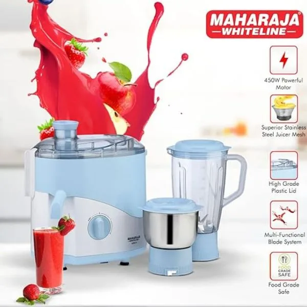 Maharaja Whiteline JX1-149 Odacio Blue 450 W Juicer Mixer Grinder (MOQ=100)